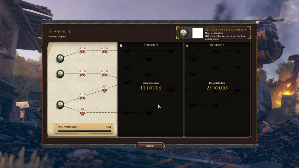 Et ce n’est pas fini! On a la campagne solo, le multi en local contre des IA et du multi en ligne. Il ne manquait qu’un système de saisons qui est d’ailleurs en route depuis la sortie. Les saisons vous permettront de débloquer des éléments de cosmétiques pour votre compte. Une saison consistera en différents objectifs à remplir. Ces objectifs se débloqueront au fur et à mesure de la saison. Cette partie ajoute un peu de piquant en plus au jeu qui pour le coup semble très complet.