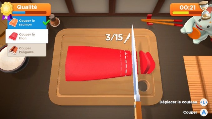 Vous aurez donc au total 5 chefs reconnus qui vous accompagneront pour devenir le meilleur cuistot. Chacun dispose de ses propres plats issus de son pays d’origine. Un menu sera mis à disposition vous devrez réaliser parfaitement chaque plat pour gagner des points et débloquer les plats. Soit en vous entraînant, soit en cuisinant pour les clients. Des petites cinématiques apparaissent entre chaque nouveau plat. Plus vous devenez bon, plus votre restaurant sera rempli de clients. Seul bémol, le jeu peut paraître très répétitif. Vous pensez que le jeu est simple ? Un petit peu ! Bien que la manipulation du joystick lors du mélange des ingrédients reste assez dure à manier.