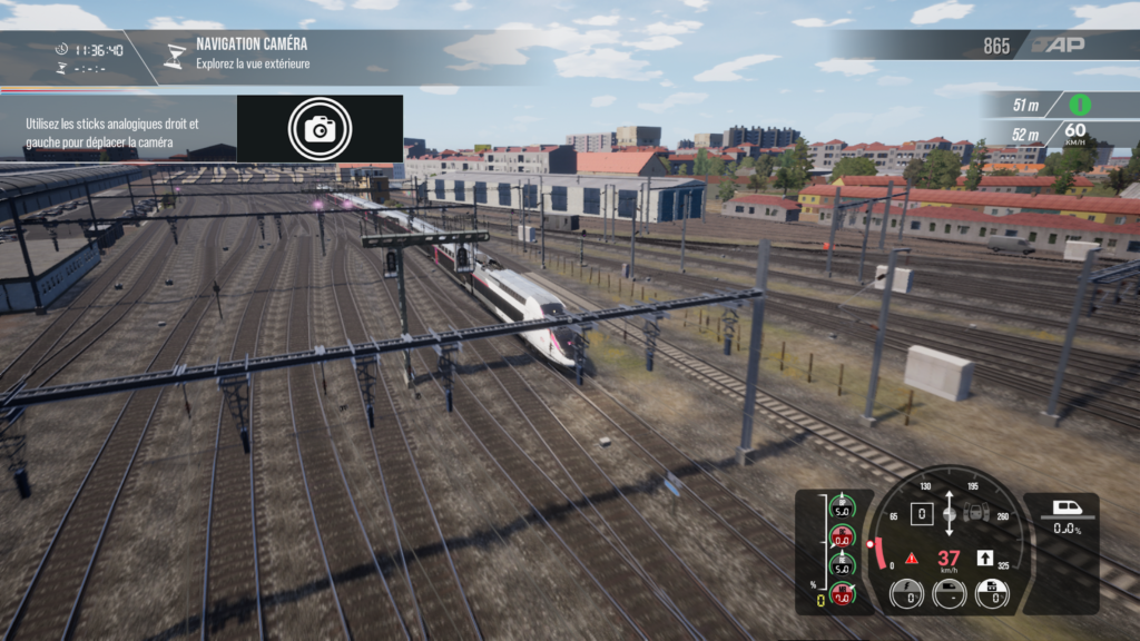 Comme c’est une ligne grande vitesse, le jeu est un tout petit peu plus complexe surtout au niveau des freinages lors de nos arrivées en gare, il faudra bien gérer le frein sur la distance et plusieurs essais avant de trouver le bon timing pour réussir à arriver avec une bonne vitesse et s’arrêter au bon endroit de la gare. Ma première fois , je me suis retrouvé à arriver avec peu de vitesse à encore quelques centaines de mètres de la gare et arriver en retard car il fallait que je retrouve une bonne vitesse et bien réutiliser le frein. Pour le côté manette en main, rien n’est changé par rapport au jeu principal, cela a ses défauts et ses forces. Tout est malheureusement (ou heureusement) pas actionnable (sinon on risque de faire des bêtises) mais seulement les principaux et ce qu’on utilisera tout le temps (levier de vitesse/freinage, ouverture/fermetures des portes, clé de contact, alimentation du train, lumières ou encore essuie-glace, etc…). Heureusement sur manette, il y a les touches rapides qui peuvent être fort utiles surtout pour la gestion du levier de vitesse et frein grâce aux boutons RT et RB où un clic suffit à augmenter ou descendre la vitesse.