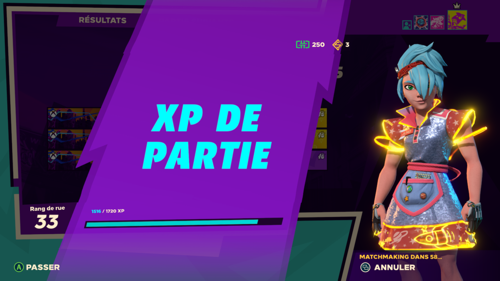 La progression permet de débloquer des éléments de cosmétiques pour notre personnage avec un système de niveaux à 100 paliers obtenus avec l’expérience du jeu mais aussi des défis appelés contrats. Mais ne vous inquiétez pas vous pourrez continuer de monter de niveaux après avoir atteint le palier 100, votre cadre changeant (sans doute comme un niveau de prestige) avec 9 différents. Pour éviter les loots box, Velan a préféré donner un cosmétique d’une rareté au pur hasard (chaque dizaine de niveaux et un cosmétiques spéciale, par exemple au level 06-16-26 etc il s’agira d’un cosmétique de visage) donc il faudra prier pour avoir de bons objets tout de même… Couplé à ceci, une boutique est disponible où on utilise de l’holofrik que l’on peut gagner via le jeu avec des contrats ou le leveling ou tout simplement acheté avec de l’argent réel si on ne veut pas attendre. Cette boutique est mise à jour quotidiennement. Enfin une autre « monnaie » est disponible qui sont des jetons styles qui permettent de déverrouillER des tenus alternatives à ceux qu’on possède déjà. Enfin, il n’y aura pas de Battle Pass dans le jeu, il est remplacé par des défis d’événement mais aussi des contrats de bandes, qui seront mis à jour avec les saisons pour remporter encore plus de récompenses.
