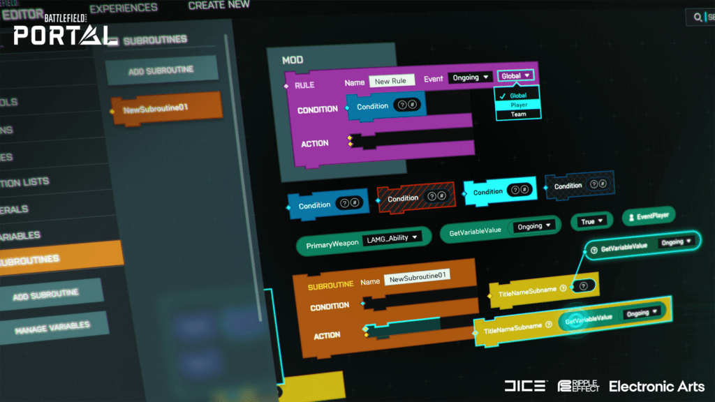 Véritable première pour la franchise Battlefield, Battlefield Portal est une plateforme communautaire conçue pour offrir une grande variété d’expériences inventives en donnant aux joueurs les outils nécessaires pour établir leurs propres règles et concevoir leur propre expérience Battlefield ultime, et partager cette expérience avec d’autres personnes.
