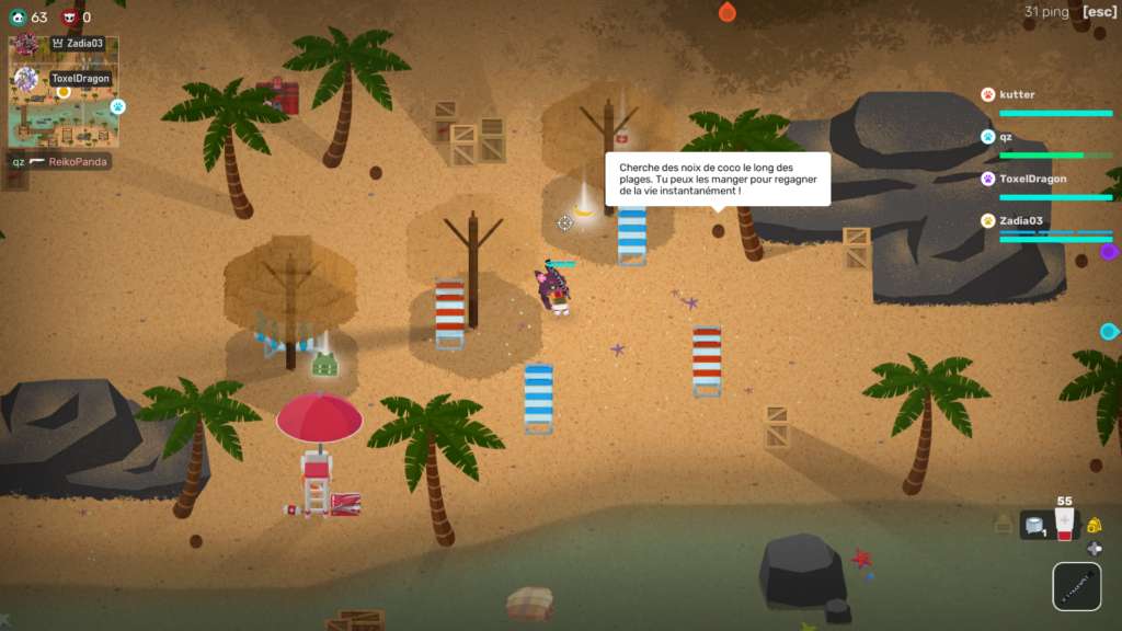 Super Animal Royal est une bonne alternative à tous ces Battles Royales, il offre un game play en 2D unique avec des graphismes très colorés de style cartoons ainsi que de nombreux bruitages accompagnant chacune des actions. Il met à disposition des joueurs une très grande variété d’objets cosmétiques plus ou moins mignons les uns que les autres, et la possibilité de débloquer assez facilement les différentes espèces animales grâce aux supers aimants. Ce jeu dispose également d’un battle pass et de divers DLC (dont un gratuit pour les membres GamePass), mais malgré tous ces avantages, quelques points lui font encore défauts, qui je l’espère seront corrigés pour la version finale du titre.
