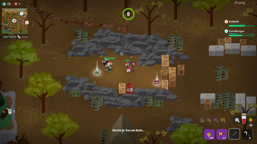 Super Animal Royale met à disposition des joueurs divers objet et montures sur la map, dont :