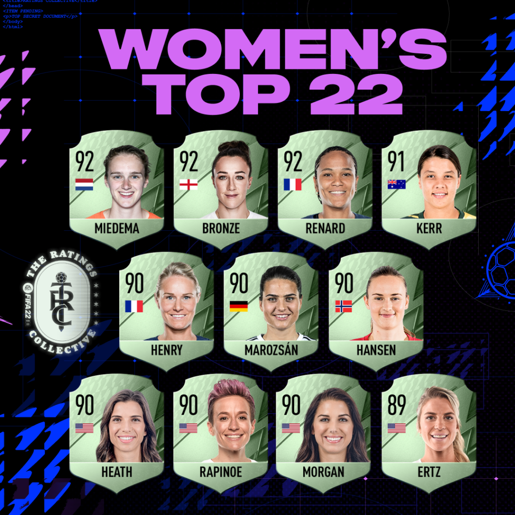 Après la liste des joueurs les mieux notés, EA nous dévoile la liste des meilleures joueuses pour FIFA 22 avec 4 françaises dans le top 22 !!! Voici la liste :
