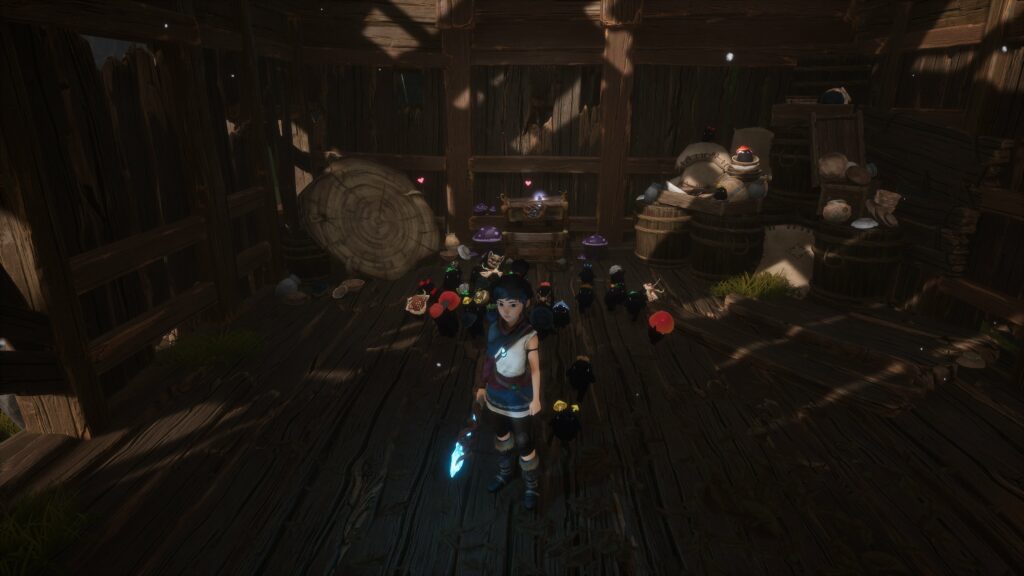 L’un des gros points fort de Kena Bridge Of Spirits c’est son univers. Vous allez devoir faire de nombreux allers retours sur la carte si vous voulez finir le jeu à 100%. Chaque recoin devra être fouillé pour trouver un Rot, un élément cosmétique ou un autel qui vous permettra d’augmenter votre vie. Il faudra être vraiment attentif a votre environnement pour trouver un passage qui pourra vous aider à progresser.