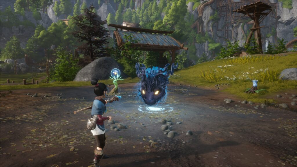 Kena Bridge Of Spirits n’est pas une aventure de tout repos. Vous allez devoir affronter de nombreuse créatures infectées par une corruption cherchera à tuer notre héroïne. Et bordel les combats sont dur ! J’ai beau avoir l’habitude de la série des souls, je me suis pris de sacrées raclées. Vos ennemis ne vous pardonnent aucun faux pas. une esquive raté, c’est quasiment la moitié de votre barre de vie qui s’en va. Il faut être clair, ca surprend au début.