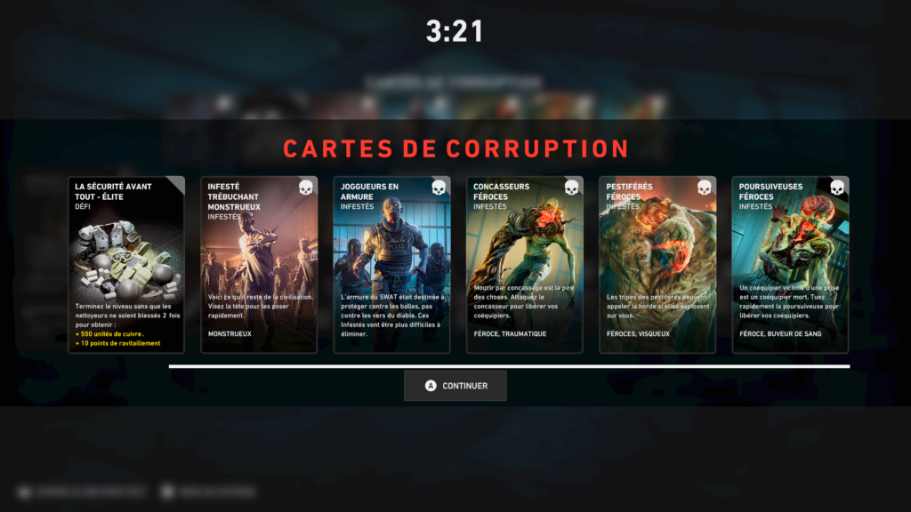 Parlons maintenant un peu de la difficulté du jeu, qui est au nombre de trois, la première recrue, nous permet de faire notre premier jet dans se monde infesté sans trop de problème (même si à la fin cela se corse un peu). Pas de dégâts alliés, ce mode est vraiment la pour nous faire découvrir l’histoire une première fois et nous faire connaitre vraiment les missions, et de vous faire dépenser vos points de ravitaillements débloqués en meilleures cartes. Puis lorsqu’on termine cette première run, on a envi de changer de difficulté et c’est vraiment la que les ennuis commencent … Aie Aie Aie, en vétéran, le tir allié est activé (mais modéré) et les ennemis sont plus nombreux avec plus de mutations et de zombies spéciaux. Et vraiment, je ne peux vous conseiller que de bien vous préparer et jouez avec des gens qui connaissent déjà le jeu, ayant un micro et concertez vous pour créer vos decks adaptés (tout simplement ne faites pas en Parties Rapides), car vous allez roter du sang, et encore je parle pas du mode cauchemar ou la c’est l’hécatombe.