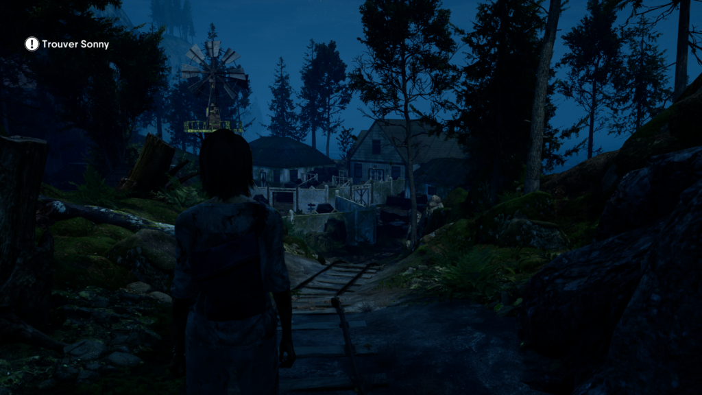 Durant notre périple et comme je l’ai dit plus haut, nous allons rencontrer des monstres qui peuvent prendre plusieurs formes, des plantes qui une fois détruites enlèvent la zone d’obscurité, des hommes avec des masques (tiens tiens tiens je vous reconnais vous) des crapauds et j’en passe. Un bestiaire tout de même bien fourni. Pour nous défendre, Jess pourra confectionner des armes qui restent dans le domaine de la spiritualité et la cohérence, un bâton de sauge pour les insectes, un bâton de sorcière qui permet de récupérer de la spiritualité dans les zones d’obscures. Ajoutez à cela, des petits objets lançables ou piégeable tel que du sel (pratique dans les rituels non ?), de l’huile ou encore du pétrole comme bombe. Tout ceci est bien joli, mais en partie je vous avoue avoir trouvé notre personnage un peu lourd et surtout lors de nos attaques, j’ai aucune impression de si je fais une attaque lourde ou faible. Bon après, on peut tiquer ou non, mais les esquives peuvent être aussi lourdes, mais cela donnent pour ma part du réalisme, on était pas prêt pour ça ^^.