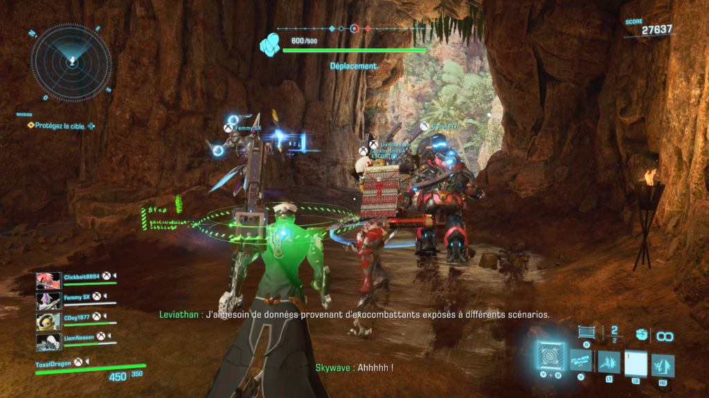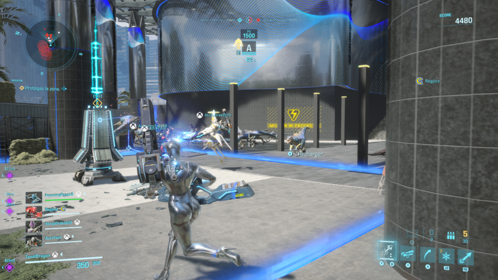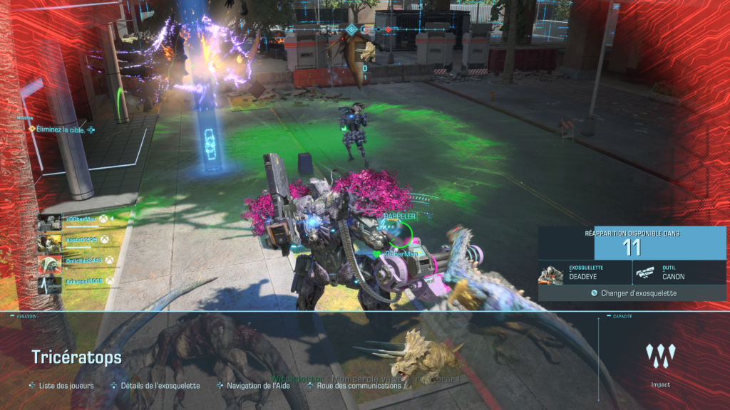 Pour accomplir nos missions, le jeu nous fournit au choix 10 exosquelettes définis sur 3 classes. Les assauts, les tanks et les soutiens . Dans les assauts on aura de la distance, du Cac ou encore du dégât de zone, les soutiens soignent ou donnent des buffs de dégâts, les tanks vont servir de barrière. Chaque exo a trois pouvoirs spécifiques à lui, un outil qui peut être un canon ou encore un objet de soins, un super qui se charge au fil des dégâts donnés. Il est possible de changer d’exo en cours de partie si le besoin ou la situation le fait sentir. Comme pour chaque jeu du genre certains exos sont plus efficaces soit en PVP soit en PVE comme par exemple, Vigilant et son sniper qui sera beaucoup plus à l’aise dans des affrontements contre des joueurs.