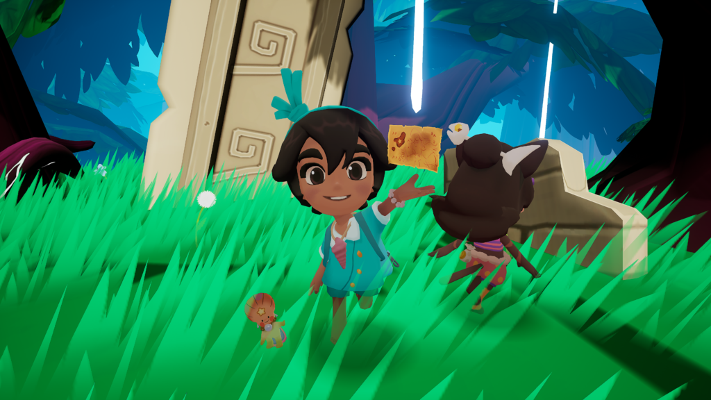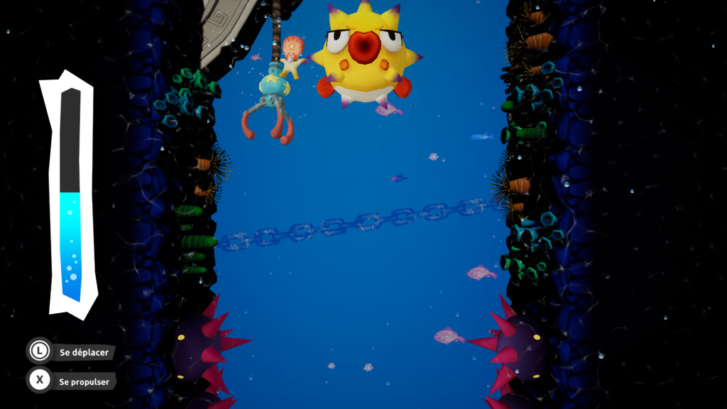 La prise en main de Koa ne présente aucune difficulté : on se déplace grâce aux joysticks, le bouton A est quant à lui utilisé pour sauter, X pour courir. RT permet d’écrabouiller ce qui se trouve sous vos fesses. Enfin, la pression du bouton Y permet de saisir et de lancer quelques objets. La visée est grandement facilitée par le titre qui présente au joueur la cible très simplement. Le déplacement de Koa est donc très accessible, y compris pour les plus jeunes.