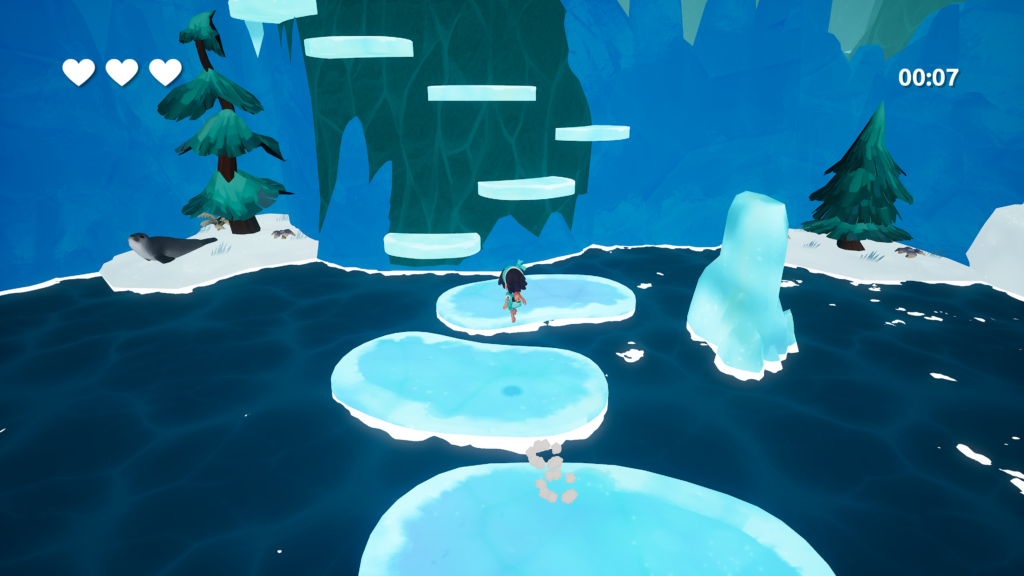 En parlant graphisme, si cela peut paraître assez simple, ils n’en restent pas moins particulièrement propres, avec des univers distincts parfaitement retranscrits. La glace devient un amoncellement de petites banquises glissantes, le volcan un univers qui bouillonne, les esprits sont complètement perchés, et les quelques parcours sous l’eau sont pleins de charme. La musique et les bruitages complètent l’immersion sans équivoque.