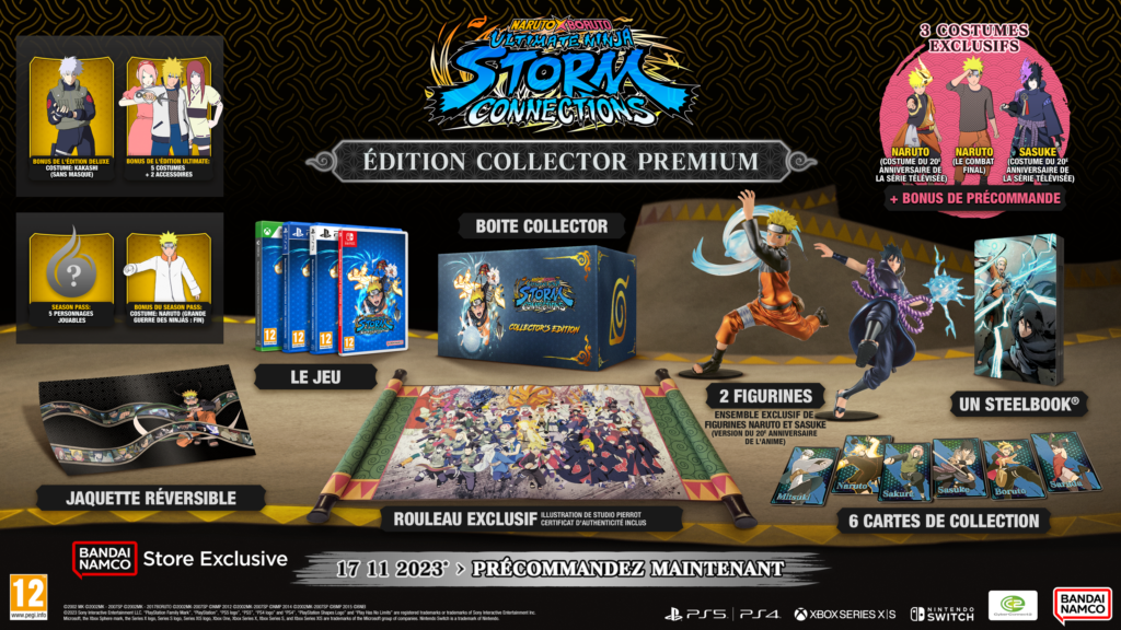 Bandai Namco Europe vient d’annoncer la sortie de NARUTO X BORUTO Ultimate Ninja STORM CONNECTIONS le 17 novembre 2023 sur PlayStation 5, PlayStation 4, Xbox Series X|S, Xbox One et Nintendo Switch. Les détails du lancement de la version PC via STEAM suivront à une date ultérieure.