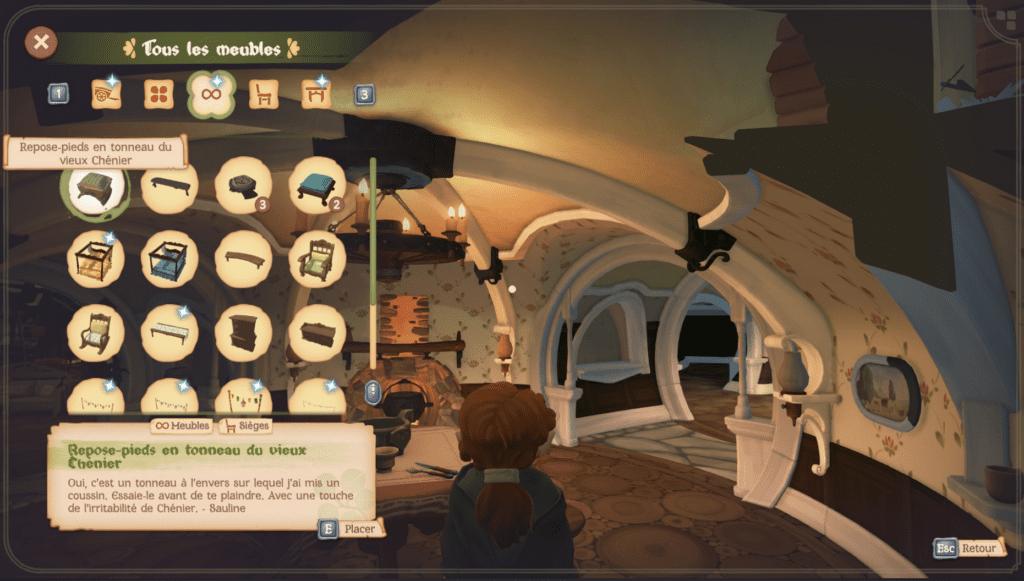 Les meubles et accessoires sont beaux et nombreux, de quoi passer des heures à décorer et personnaliser notre trou de Hobbit.
