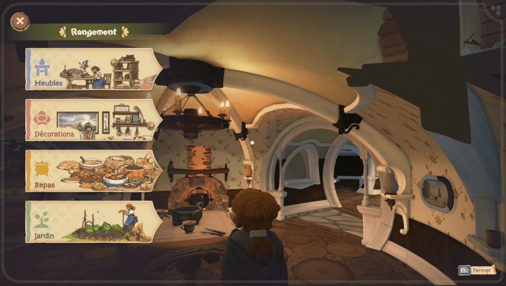 Une fois arrivé nous apprenons l’identité de notre chauffeur, (je vous laisserais découvrir cela en jeu), et découvrons notre trou de Hobbit (notre maison) en compagnie d’Orlon un Hobbit venu nous accueillir. Il nous explique comment devenir un vrai habitant de Lèzeau autour d’un bon repas.