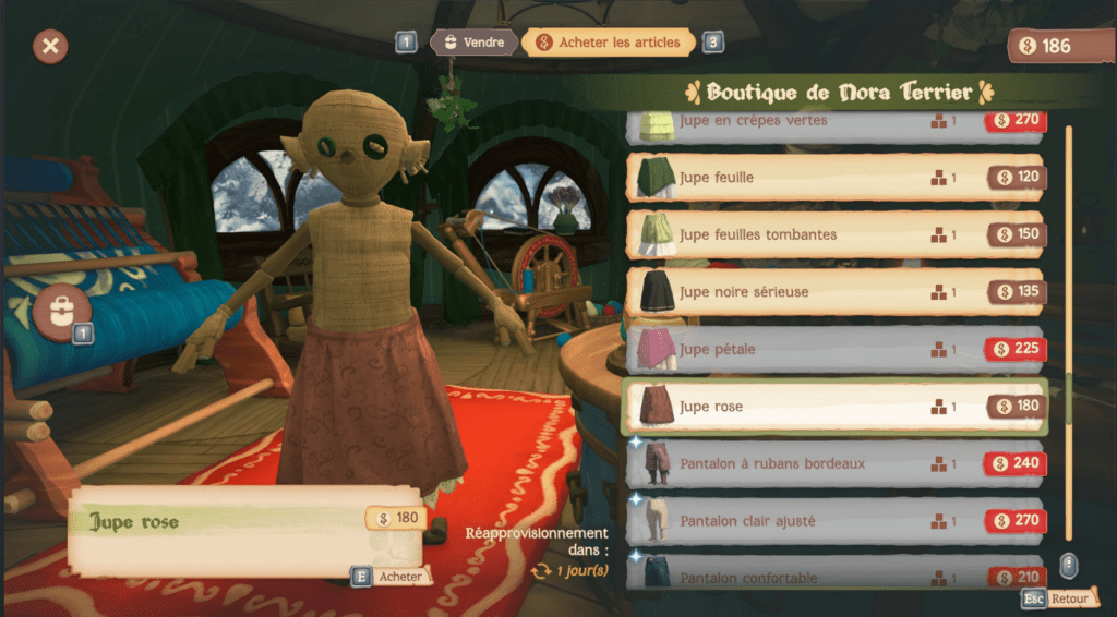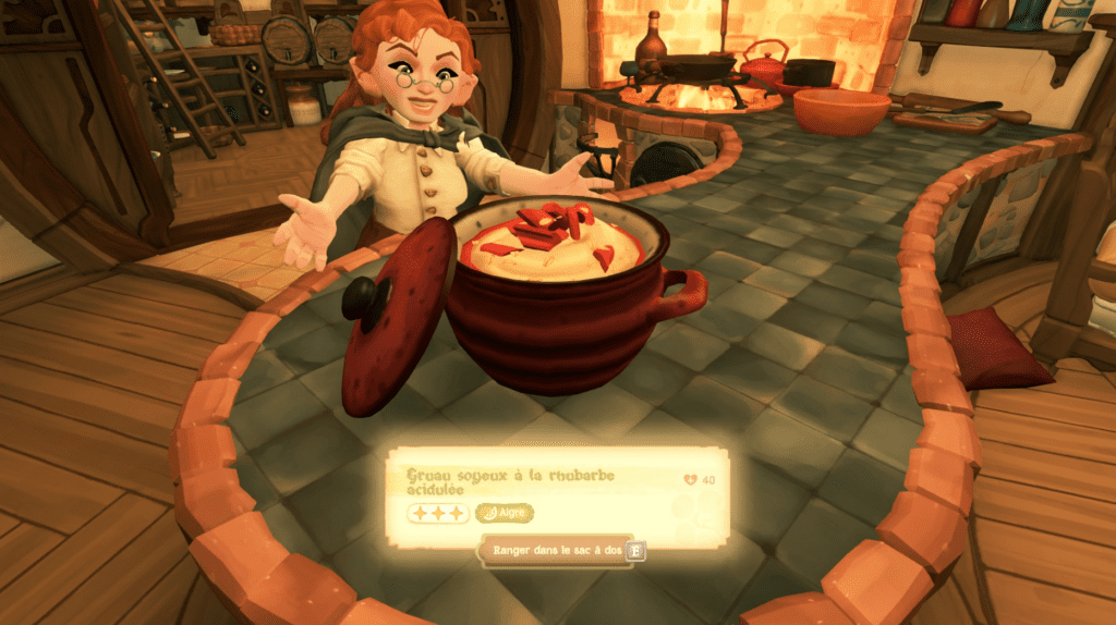 Le gameplay est assez simple. On va devoir accomplir des quêtes pour les villageois de Lèzeau afin d’obtenir en retour de nouveaux objets de décoration pour notre maison et de nouvelles recettes.