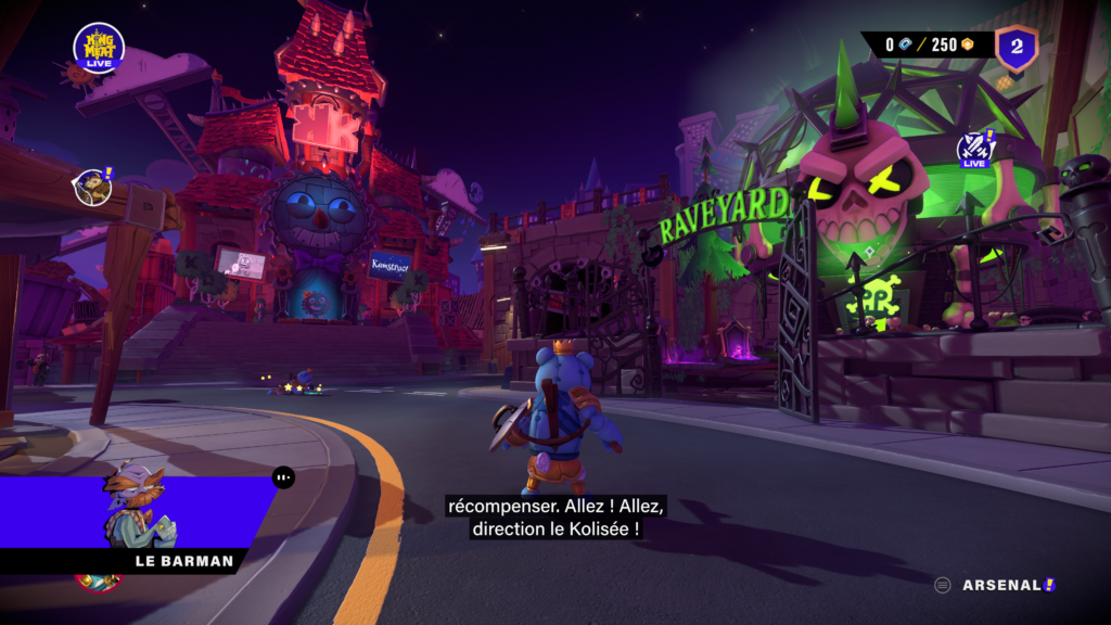 Sur Xbox Series X, King of Meat tourne parfaitement. Les temps de chargement sont courts, la direction artistique colorée et cartoonesque colle parfaitement à l’ambiance déjantée.