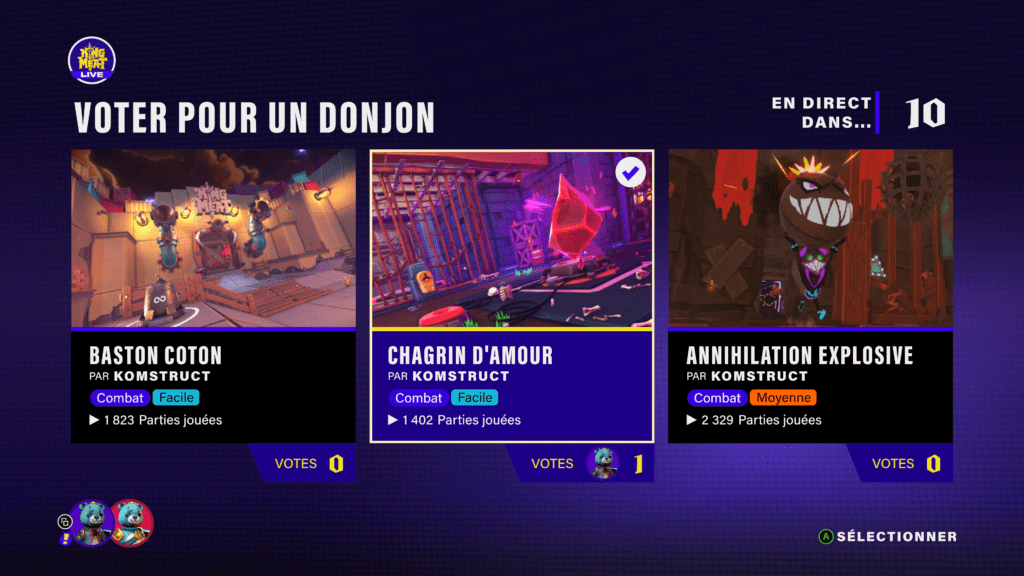 Le hub joue un rôle central : il regroupe tous les accès aux donjons officiels, mais aussi ceux créés par la communauté. Et là, le potentiel est énorme. Le mode Création permet aux joueurs de concevoir leurs propres donjons, et vous pouvez même tester des niveaux qui n’ont pas encore été validés officiellement. Résultat : une diversité énorme, parfois du grand n’importe quoi, mais toujours fun.