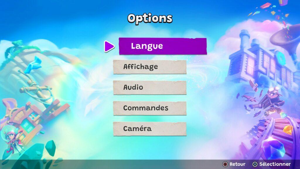 Le petit détail sympa sur le menu : à chaque fois que tu sélectionnes une option, celle-ci se teinte de violet, un clin d’œil à Laylee. Ce choix visuel est bien pensé et n’entrave pas la lisibilité.