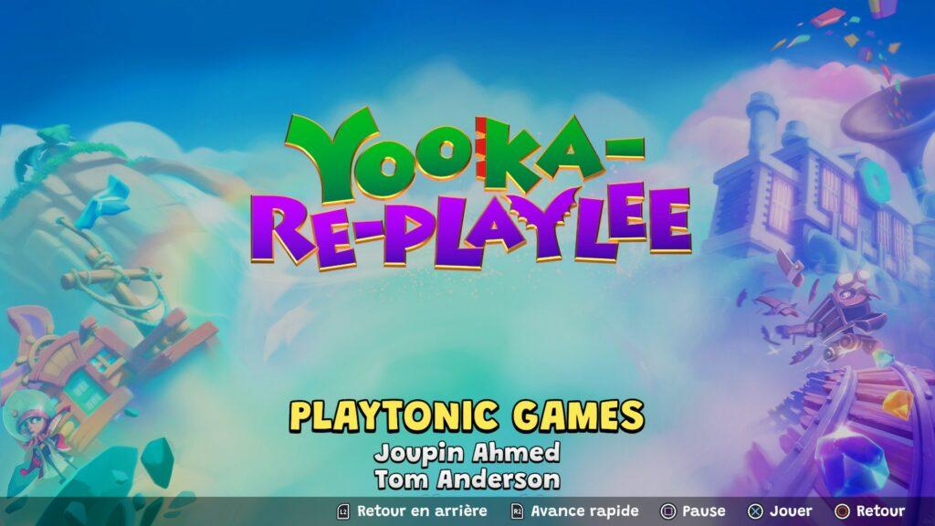 Les menus de Yooka-Replaylee sont simples, clairs et agréables. On accède rapidement à l’essentiel : lancement d’une partie, options, crédits… tout est bien organisé.