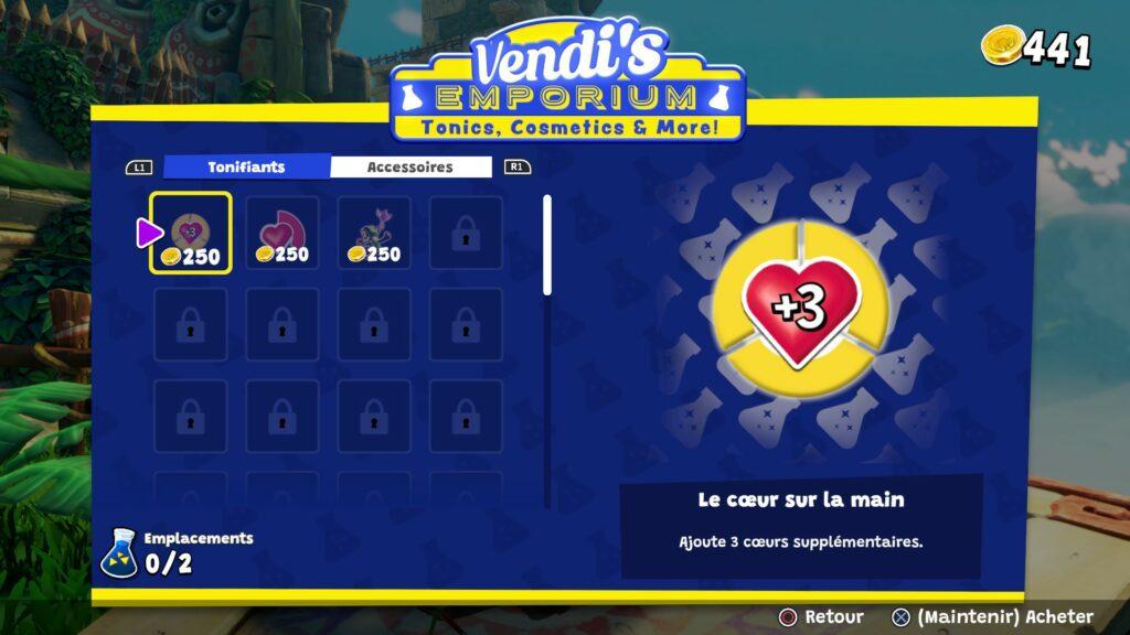 Le jeu te donne aussi accès à quelques boutiques, dans lesquelles tu trouveras :