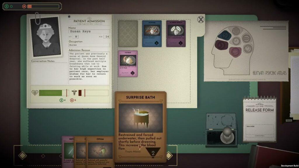 Chaque journée commence par la prise en charge de plusieurs patients. À l’aide d’un système de cartes, le joueur doit analyser les symptômes, poser un diagnostic et appliquer un traitement adapté. Cette mécanique, à la fois simple d’accès et riche dans ses possibilités, demande observation, logique et réflexion. Une mauvaise décision peut non seulement nuire à l’état du patient, mais aussi éveiller les soupçons de la hiérarchie, mettant en péril la couverture du joueur.
