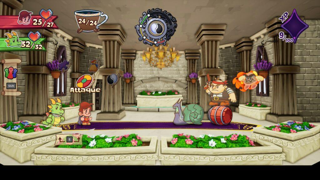Le jeu propose des phases de Plateforme, des combats au tour par tour, de l’exploration et même un peu de houssing pour arranger notre bureau. Le tout fonctionne parfaitement et s’imbrique pour donner une aventure solide et plaisante. Le gameplay est agréable, fluide et facile à prendre en main.