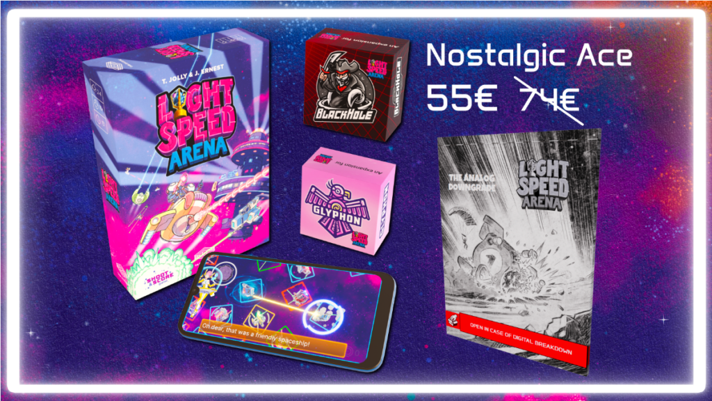 Proposant quatre factions jouables, chacune dotée de capacités spéciales uniques et d’un système de ciblage laser particulier, Light Speed : Arena encourage les joueurs à exploiter tous leurs atouts pour déjouer et manœuvrer leurs adversaires dans une exaltante bataille spatiale en temps réel. Placez et orientez tactiquement vos vaisseaux spatiaux pour marquer le plus de points en abattant les véhicules ennemis, collectez les minerais des astéroïdes, et ajustez votre stratégie en fonction de l’évolution constante des sponsors.Les contributeurs peuvent acquérir Light Speed: Arena à partir de 25 €, incluant les pièces du jeu de base et l’application compagnon Snap&Score nécessaires pour jouer. Pour les joueurs souhaitant profiter encore plus du jeu, les niveaux Rising Star et Ace incluent des factions supplémentaires et la possibilité d’augmenter le nombre de joueurs à 5 ou 6.